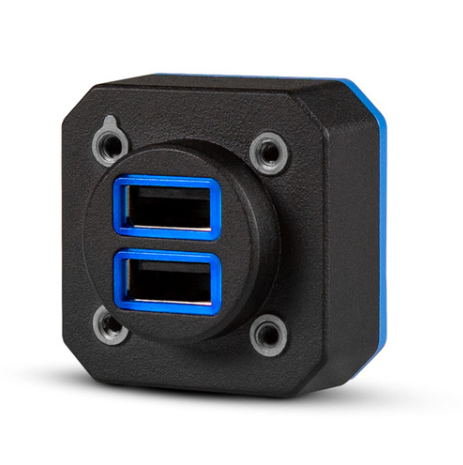 The dual-port GSB 15 USB charging hub features Quick Charge™ Technology and can deliver 3A (up to 18w) of power to each USB port simultaneously. This is typically enough electrical current to power two iPad tablets or similar smart devices — while also charging their batteries. There’s built-in protection against circuit and temperature overloads. Plus, configurable halo lighting on the plugs makes them easy to locate and access in a darkened cabin or cockpit.