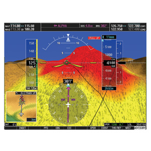 When darkness, fog, rain, haze or solid IFR conditions keep you from seeing clearly out the windshield, our SVT virtual flight reference is like “taking the blinders off.” Using sophisticated graphics modeling, SVT recreates a visual topographic landscape from the G1000 system’s terrain-alerting database. The resulting virtual reality display offers pilots a supplemental 3-D depiction of ground and water features, airports, obstacles and traffic — all shown in relative proximity to the aircraft. So situational orientation is far easier and less stressful.