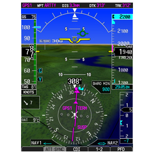Garmin’s HSVT graphics look so real, it’s almost like having a clear-day “out-the-window” view of your flight situation — even in the darkest nighttime VFR or other low-visibility conditions. Garmin’s HSVT virtual flight reference is like “taking the blinders off.”