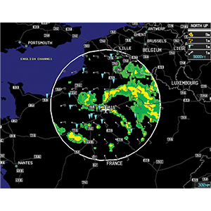 With GSR 56, you can enjoy the safety-enhancing benefits of on-demand satellite weather when operating internationally. World Wide Weather data includes Meteorological Aviation Reports (METARs) that provide current temperature, dew point, precipitation, wind speed and more, as well as Terminal Aerodrome Forecasts (TAFs) that show predicted weather for up to 30 hours in advance. Throughout most of Europe, Canada and the U.S., GSR 56 can also receive high-resolution radar imagery, which you can access directly on your compatible Garmin flight display. Additional radar coverage areas are being added continuously.